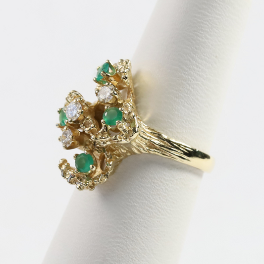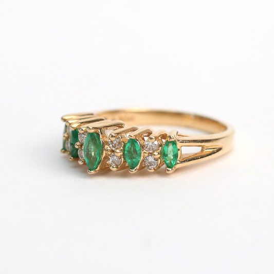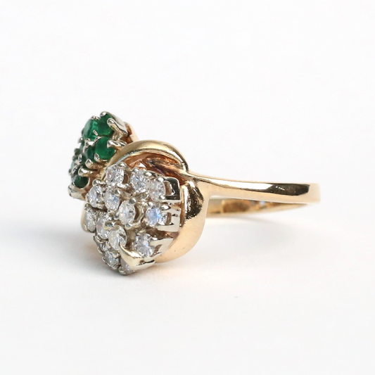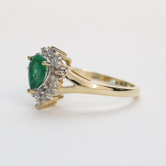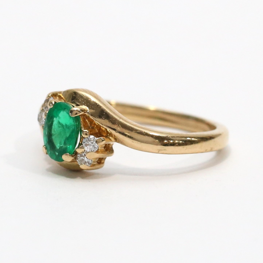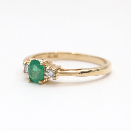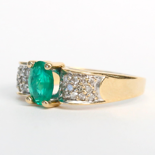 Inel cu Smarald Și Diamante din Aur Galben 14k