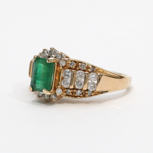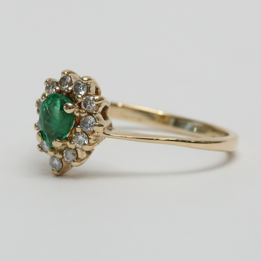 Inel cu Smarald & Diamante din Aur Galben 14k