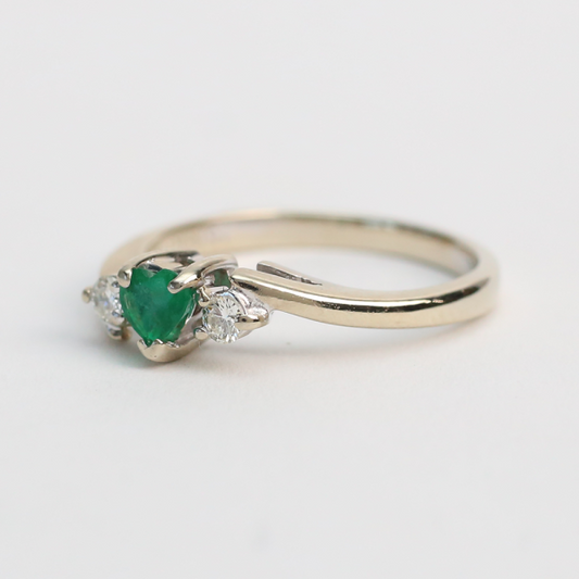 Inel cu Smarald Inimă Și Diamante din Aur Alb 14k