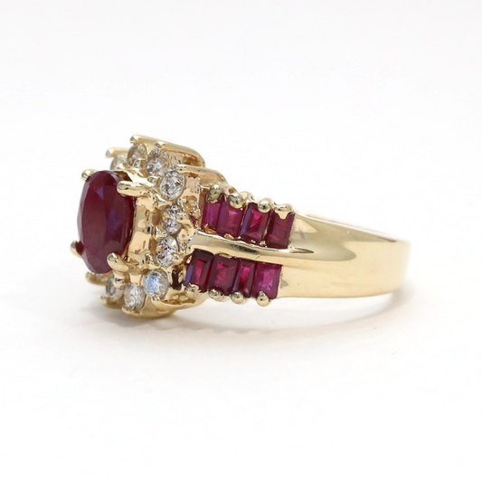 Inel cu Și Rubine Diamante din Aur Galben 14k