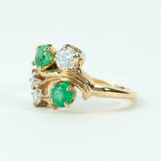 Inel cu Smarald Și Diamante din Aur Galben 18k