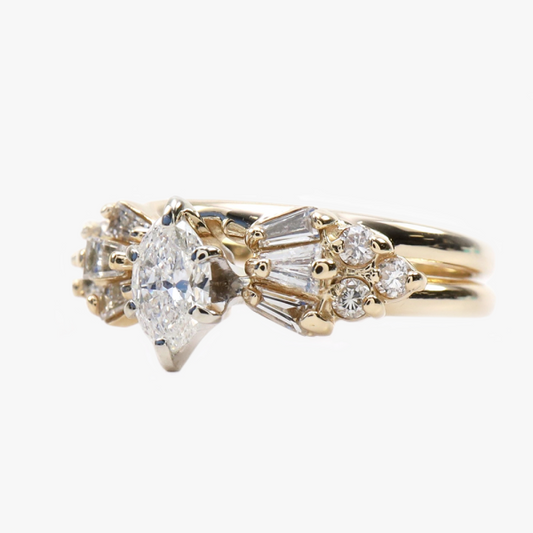 Inel Logodnă cu Diamante Marchiza din Aur Galben 14k