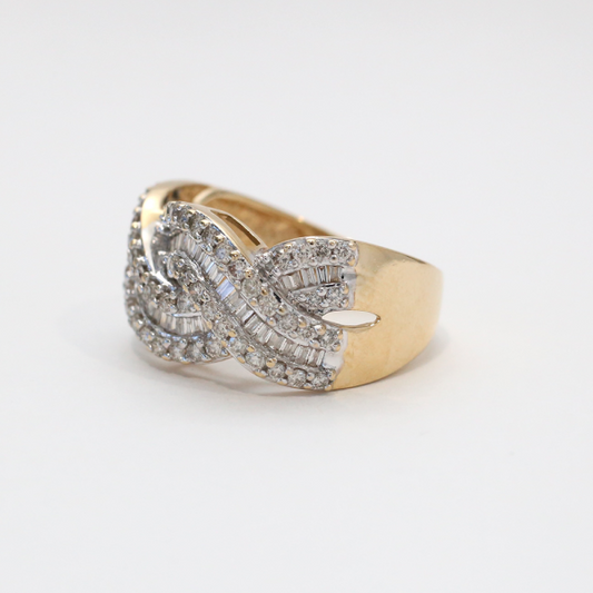 Inel încrucișat cu Diamante din Aur Galben 14k