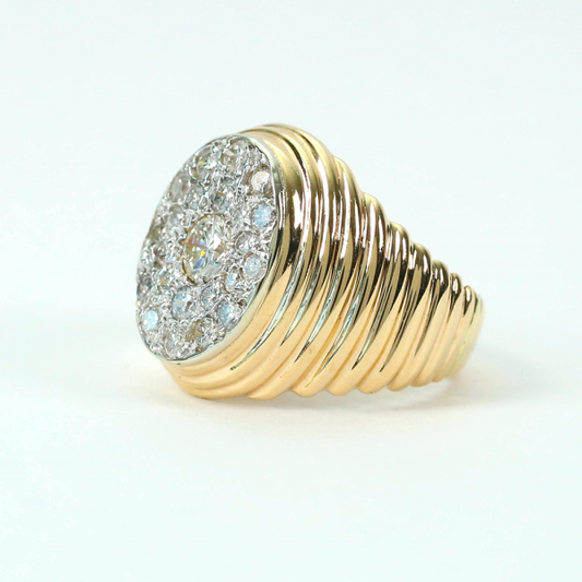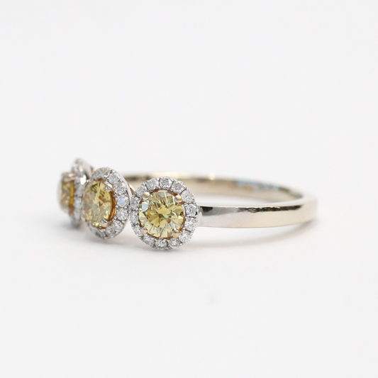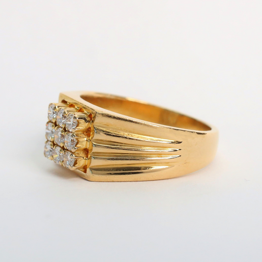 Inel Triplu Aureolă Cu Diamante din Aur Galben 18k