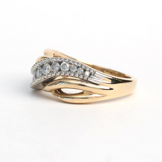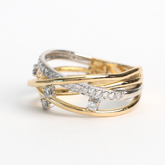 Inel Încrucișat cu Diamante din Aur Galben Și Alb 18k