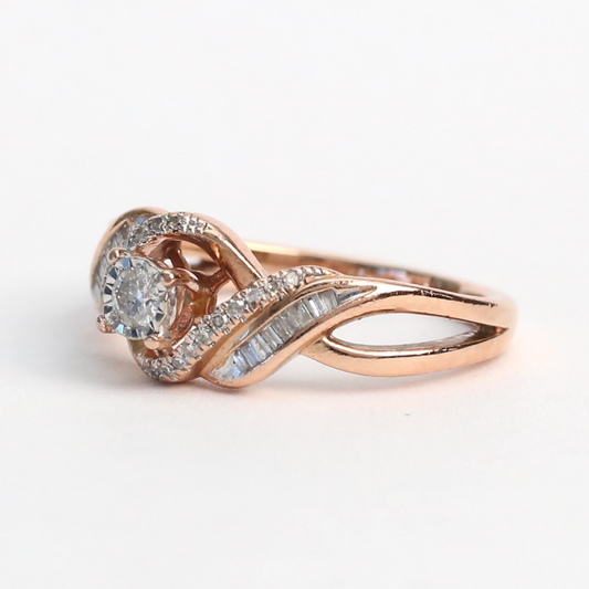 Inel Încrucișat cu Diamante din Aur Roz 10k