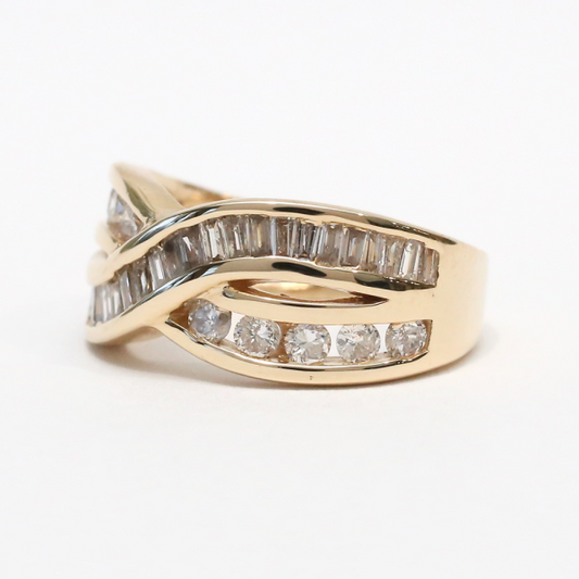 Inel Încrucișat cu Diamante din Aur Galben 14k