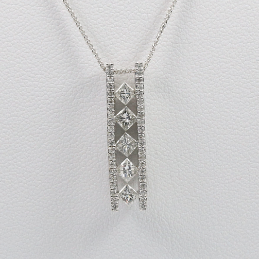 Lant cu Pandantiv cu Diamante Dreptunghiular din Aur Alb