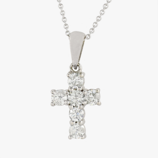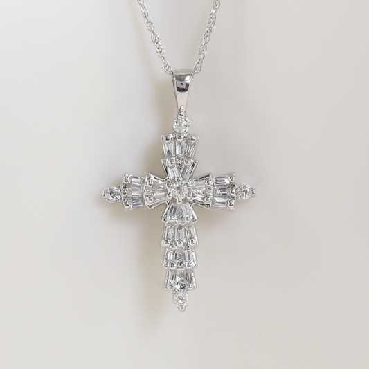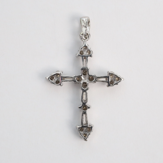Pandantiv cu Cruce cu Diamante din Aur Alb 10k