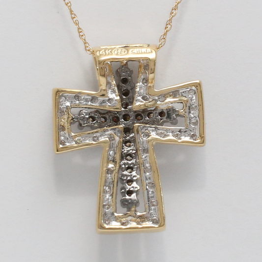 Pandantiv cu Cruce cu Diamante din Aur Galben & Alb 14k