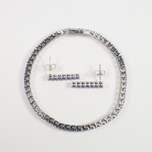 Cercei & Brăţară Tenis cu Tanzanite din Aur Alb 14k