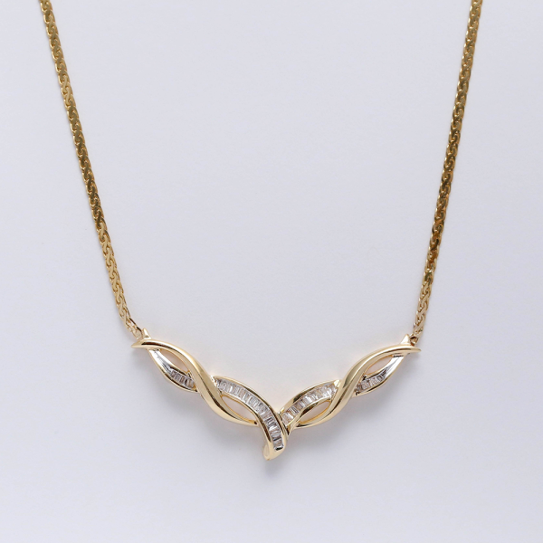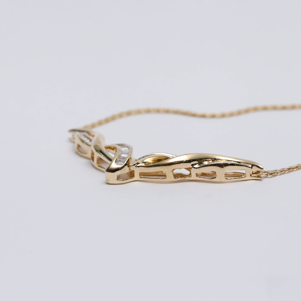 Acest minunat colier cu pandantiv de papetărie are o gamă largă de baghete cu set de canale Greutatea totală este de 7,7 grame